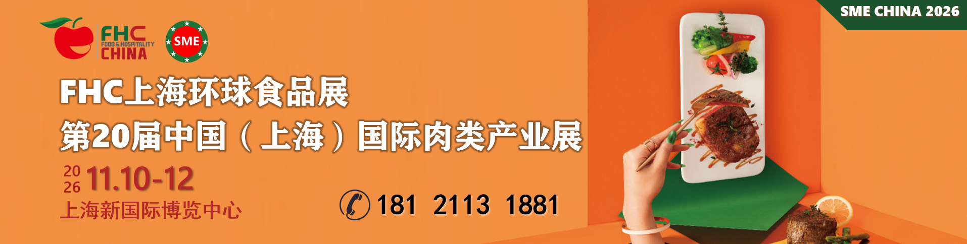 2026年SME中国(上海)国际肉类产业展将携手FHC上海环球食品展及同期展预计规模仍将达到20万平方米,参展企业3000+家、专业观众18万+人次、100多个国家及地区,在延续肉类及制品、休闲食品、烘焙轻餐、高端食材供应链多个成熟产品板块基础上,更将聚焦肉类预制食品、火锅及餐饮食材等众多潜力领域。各大主题展示区、一系列精彩纷呈的国际性活动赛事、多题材跨领域的论坛峰会互动交流,将全方位满足国内外观众在SME展会上对国际肉食品商贸对接及市场拓展等需求。
